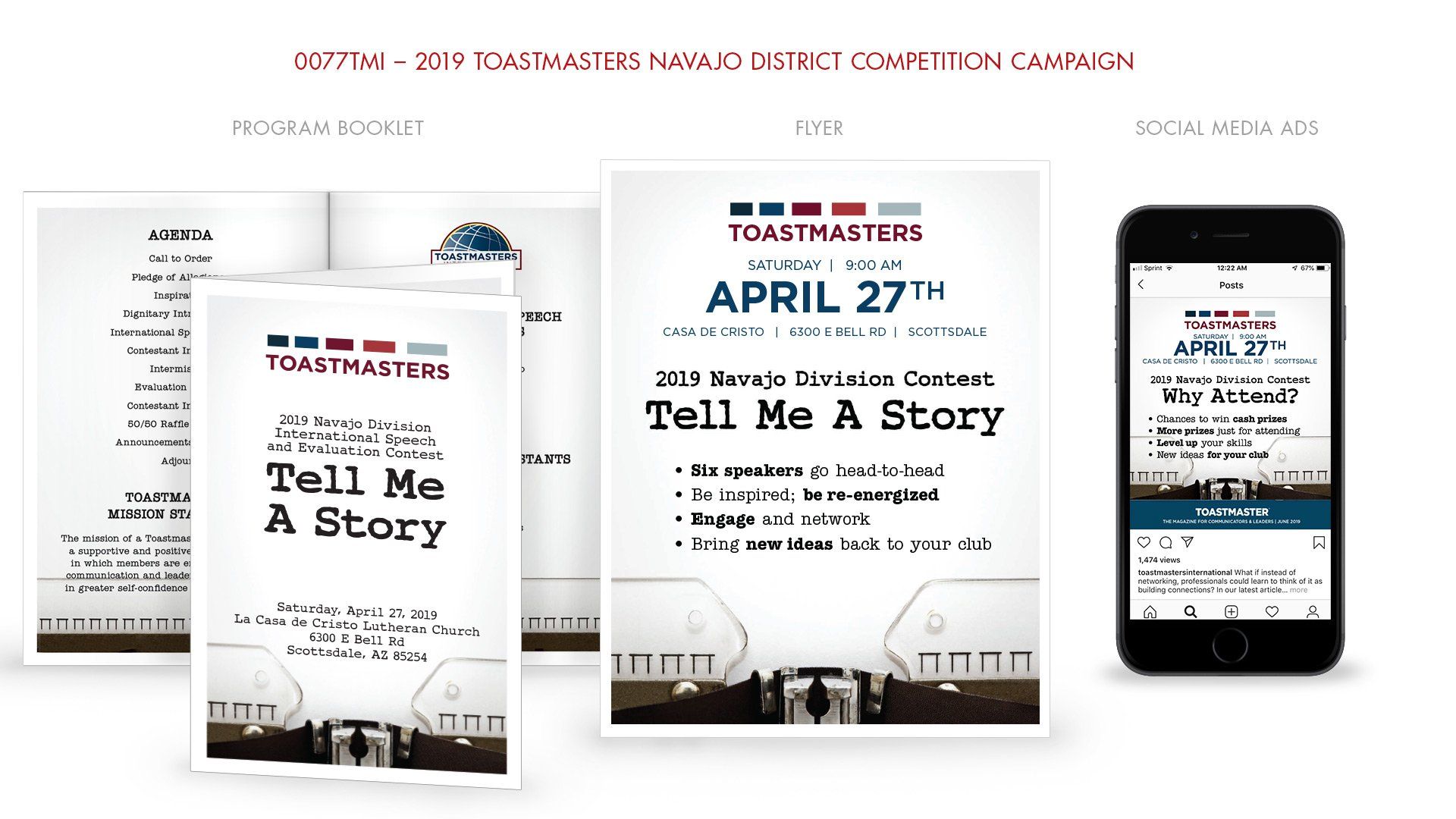 Comprehensive promotional campaign promoting the 2019 Toastmasters Navajo Division Contest in Phoenix, AZ