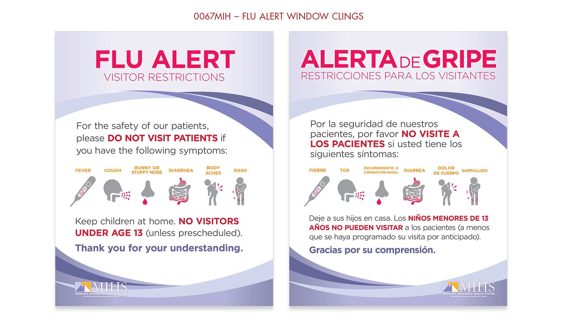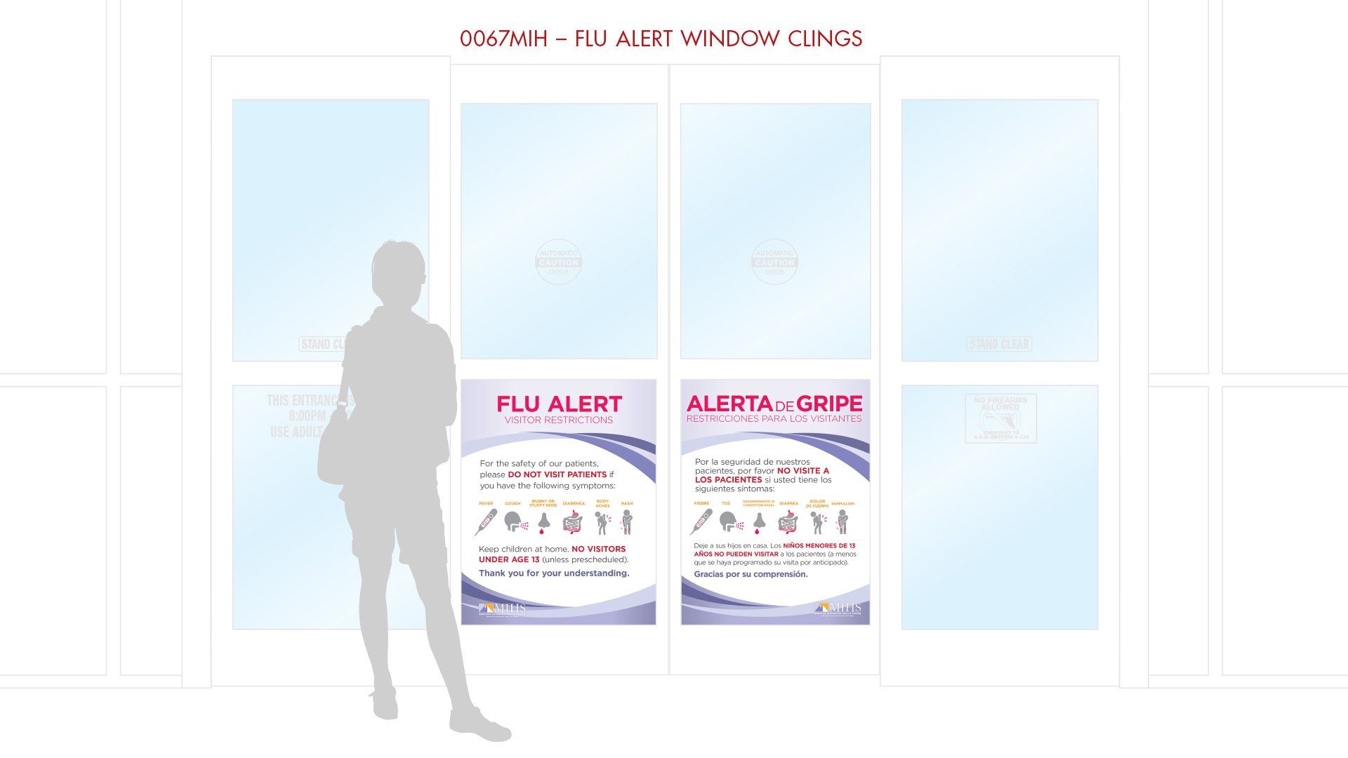 Flu Alert vinyal window decals for MIHS entrances, 25" x 31"