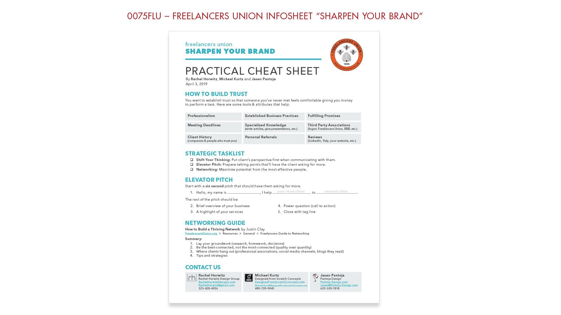 Supplemental "Cheat Sheet" for "Sharpen Your Brand" workshop & presentation