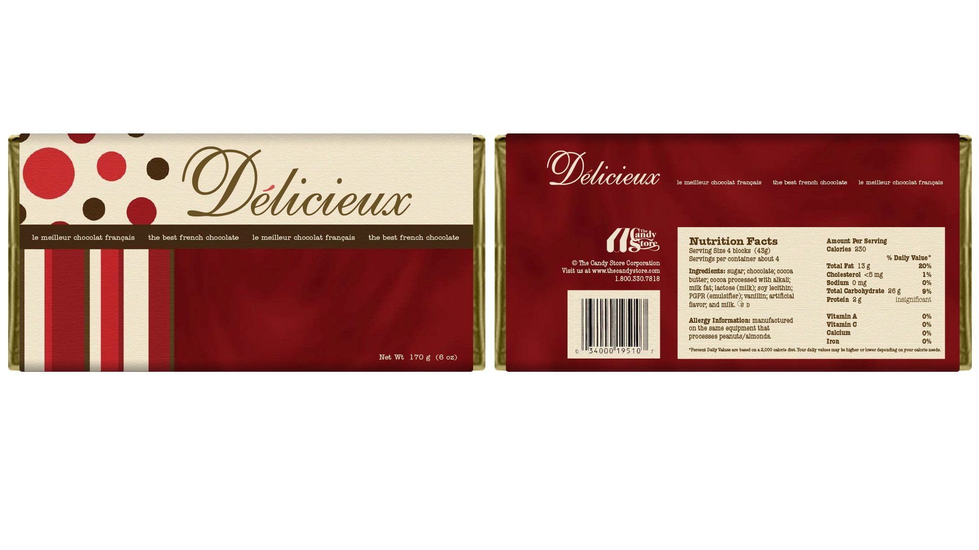 Candy wrapper for French chocolate, 6.75" x 3.5"