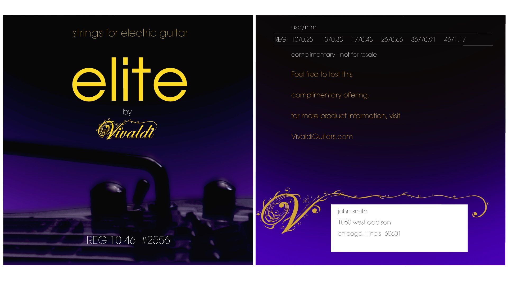 Guitar strings package design, 4.25" x 4.25"