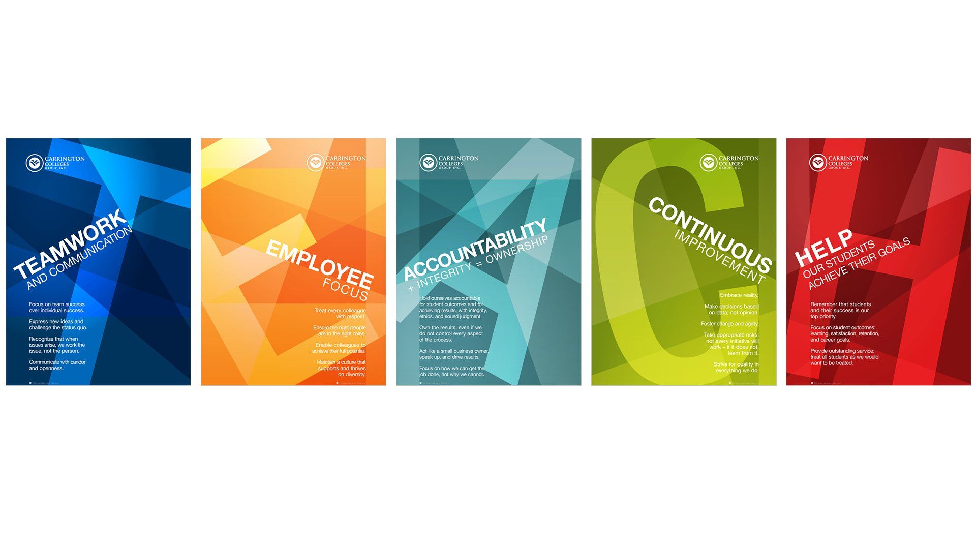 2013 poster series promoting DeVry's fundamental values, 36" x 48" each