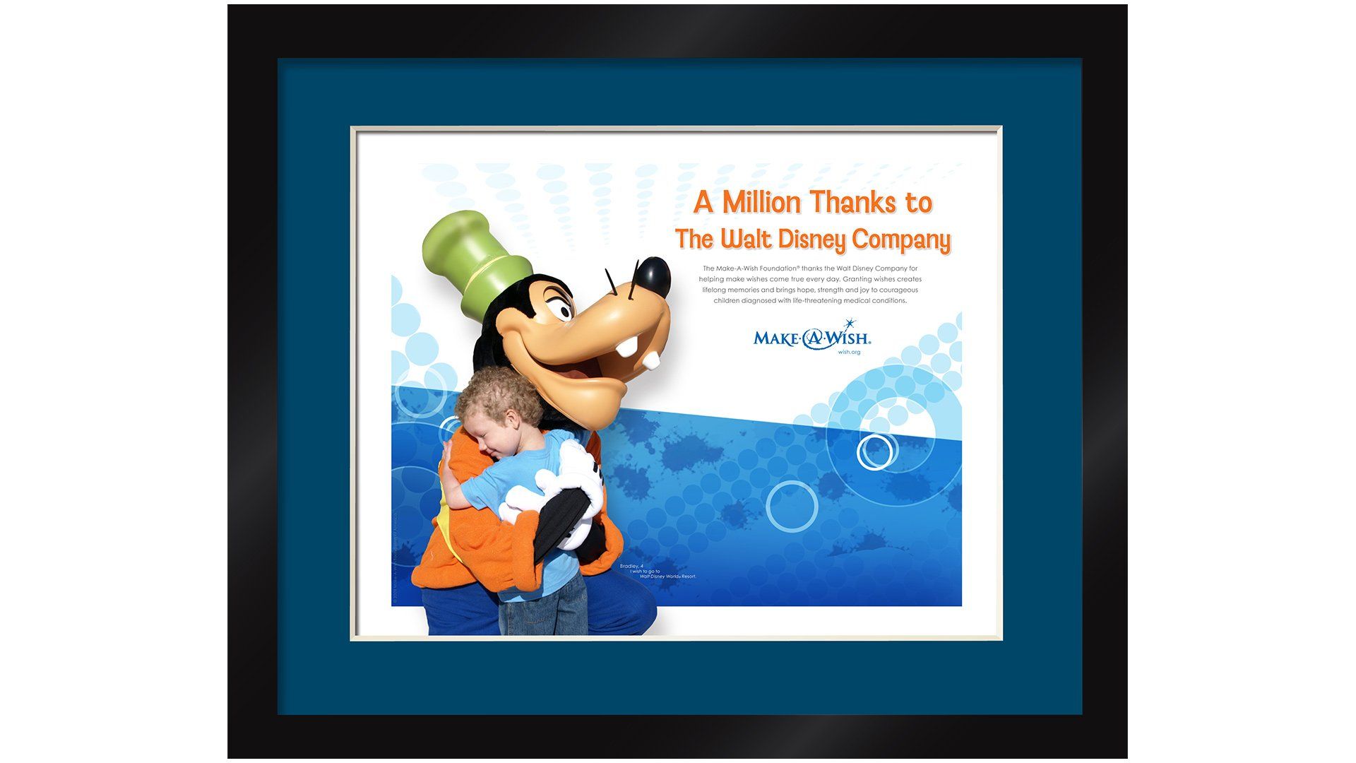 2009 framed award issued to Disney by Make-A-Wish, 23" x 19" overall